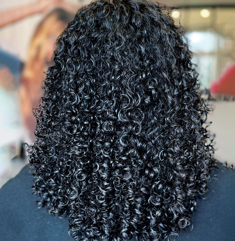 Sublimation des boucles naturelles grâce à une coupe adaptée et un rituel capillaire spécifique.